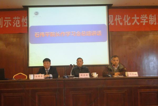 2012年12月7日和8日,我院在青浦朱家角召开了第五期干部学习会。主旨在以十八大精神为指引,围绕创办示范性民办高校为目标,以积极推进现代大学制度为保障,总结经验、找准问题、明确目标、制定措施,为加速推进学院内涵建设,为创办人民期盼的“更好的教育”而做出贡献。学院中层以上干部、后备干部、骨干人才、各系党总支部正副书记、党支部书记和专业负责人共130余人参加。学习会由常务副院长叶才福主持。 |