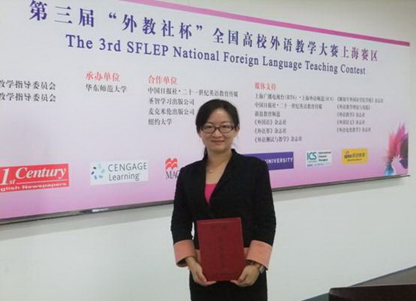 2012年10月20日至21日,第三届“外教社杯”全国高校外语教学大赛上海赛区总决赛在华东师范大学闵行校区举行,复旦大学、上海外国语大学、华东师范大学等22所高校共22位英语专业教师参加比赛。经过激烈角逐,我院英语系老师胡�荣获上海赛区总决赛二等奖。 |