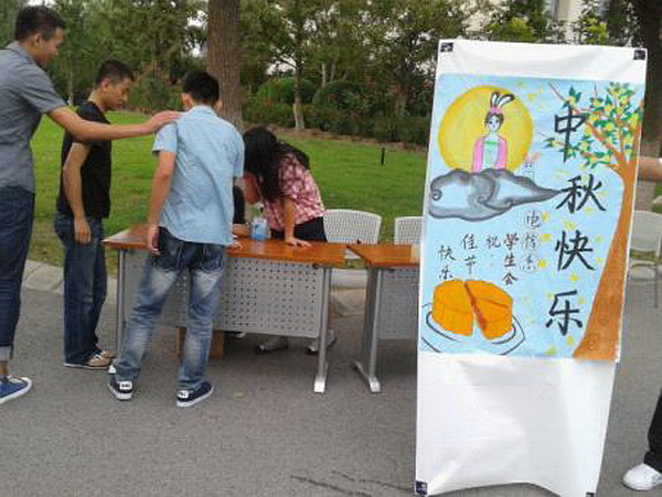 2012年9月28日,为庆祝即将来临的中秋及十一国庆长假,在电信系团总支书记金玫带领下,电信系学生会主席王琪与其他学生会成员一同给学院师生送上了真诚的祝福。 电信系学生会成员走访了相关部门领导和各系团总支书记的办公室,给他们送去了节日的祝福。下午16时,学生会成员给部分留校学生派发了“爱心月饼”,送去温馨的祝福,让同学感受到浓浓的节日氛围。 电信系团总支书记金玫表示“庆中秋及十一温暖送祝福”活动非常有意义,今后要一直传承下去,成为电信系学生会的一大特色。(电信系) |