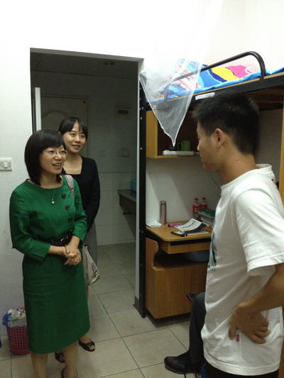 2012年9月17日晚,在对外汉语系常务副主任陈再阳带领下,系党总支部书记翁晓玲、副书记曹占侠和新生辅导员杨央一行四人,深入学生宿舍,慰问2012级新生。 在走访新生宿舍7号楼 530 至540 等 12间宿舍的过程中,系主任亲切慰问了大家,仔细询问了同学们入学以来的适应情况以及生活学习中遇到的难题,并细致回答了新生们的疑问。陈主任鼓励大家要加强同学之间的沟通交流,互帮互助,早日适应大学生活,实现角色转换。 通过走访宿舍和亲切交谈,老师们了解了新生思想动态,及时解答了他们的一些困惑,为今后工作的顺利开展和营造良好的师生关系打下了基础。(对外汉语 张文娟) |
