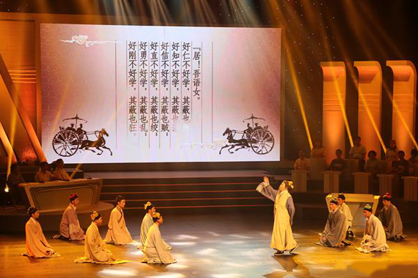 我校数十名学子在任广智老师带领下表演了《论语》节选,以情景演绎的方式生动的还原了几千年前孔老夫子教学的场景。来自13级汉语言文学专业的张炜同学认为,能有机会与名家一起表演中华传统经典是一份荣耀,也是一份责任。自己要肩负起传承经典文化的责任,做一个合格的当代大学生。任广智老师也表示,传承中华优秀经典是必要的。未来在年轻人身上,他对我校学子的精神面貌做出了极高的评价。
