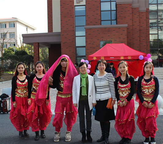 继首日“以街倾城”活动开幕后,21日中午11:30展开的后续活动更是现场沸腾,人气爆棚,更是吸引了参加“家长开放日”活动的家长观看。21日世界文化巡礼展分别由美国展区、英国展区、泰国展区以及韩国展区构成。吉祥物“太阳花”的出现吸引众多学生,随着“小苹果”音乐的响起,一群身着迪士尼玩偶服装的工作人员动感跳舞,轻快的舞蹈成为校园一道亮丽风景线。在美国展区中,大家饶有兴致地在面具或T恤上彩绘自己心中的梦想。负责英国展区的同学们以“Gay Marrige”的精彩表演汇聚了众多师生的关注,引来阵阵喝彩。来到泰国展区,“泰国人妖”跟随音乐以优美的舞姿渐入舞台时,“她”们将全场氛围推向最高潮!韩国展区则以韩式料理打开观众味蕾,这不仅让在场的同学们了解不同菜系,更是为他们带来味觉上美妙享受!