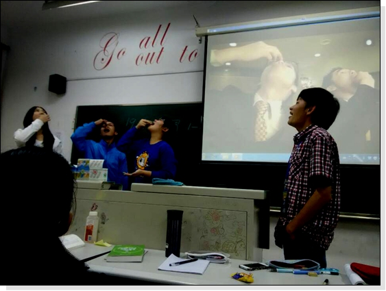 2014年10月23日20:00-20:30,14级日语专业首次在日华楼411举办了第一期语言文化学院线下课堂的试点活动。活动的主题是“日本語は面白い”(学日语的乐趣)。活动通过一段名叫《日本の形》的系列视频,以一种幽默诙谐的形式介绍了日本的一些本土文化,以食用寿司的礼仪导入,挑选其中的两个片段让学生们进行了模仿互动。新生表示原来学习能如此有趣,单单看书本上内容只能应对考试,真正的和外国人会话交流,更多要对文化的理解。