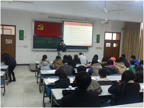 2014年12月22日12:00,工学院微型党课于日阶104举行。参加本次会议的有工学院党总支书记刘香连、副书记赵科,各专业党支部正副书记以及工学院党员工作站的成员。