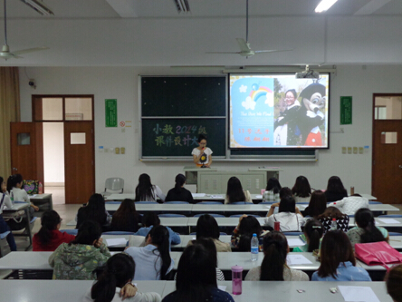 2015年5月6日下午16:30,教育学院小学教育专业2014级课件设计大赛决赛在日阶105准时召开,担任本次大赛评委有来自小学教育专业的焦姣、吴彬彬、韩苏曼等老师,教育学院常务副院长滕薇老师也莅临本次大赛,做了精彩的总结发言。