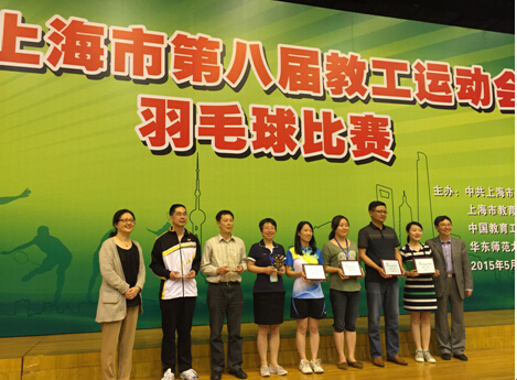 2015年5月20日,由我校工会常务副主席曹卫老师带队,钱美发处长担任教练,纪永滨、孟胜兵、徐风帆、周丽婕、黄蔚、林立老师组成的羽毛球代表队参加了上海市第八届教工运动会羽毛球比赛。最终获得高校B组季军。