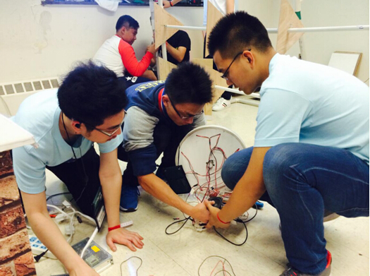 (我校代表队在美现场组装调试比赛装置)