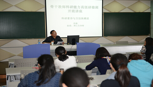 2015年10月15日下午,2015年“骨干教师科研能力高级研修班”在明华楼五楼演播中心举行开班仪式,学校党委副书记、人事处处长许岳同志主持,原上海师范大学人文学院院长、博士生导师孙逊教授做《科研素养与方法纵横谈》专题讲座,学校各部门35名骨干教师参加了此次培训。