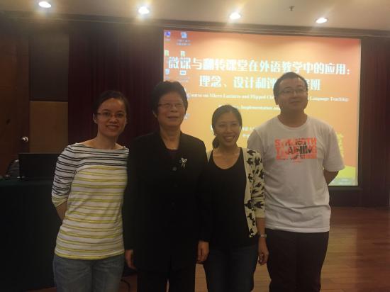 本期研修班不仅邀请到北京外国语大学学术委员会主任文秋芳教授主讲“微课与翻转课堂的理念、设计原则与评价”,苏州大学外国语学院副院长孙倚娜教授主讲“微课及翻转课堂在高校英语教学中的应用”以及“微课、翻转课堂与教师职业发展”,同时还特别邀请了苏州大学汤丽娜老师、丁咪咪老师以及2015年外研社“教学之星”大赛复赛冠军选手邹郝晶老师和黄莹老师与学员共同分享微课与翻转课堂在外语教学中的实际应用以及对自身教师职业发展的促进。