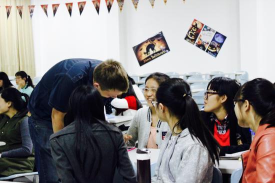 一个半小时的欢乐时光非常短暂,同学们意犹未尽,两位外教为学生的参与热情感到由衷地高兴。英语角的精彩活动将在10月21日到12月25日期间每周三下午在日华楼阶梯教室303继续上演,欢迎更多师生加入。(语言文化学院)
