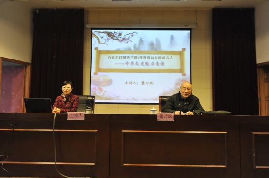 2015年11月18日下午,我校“心灵之灯”系列讲座第二讲在明华楼报告厅开讲。上海大学文学院董乃斌教授作“开卷有益和尚友古人——中华文史魅力漫谈”的专题报告。讲座由学保处主办,语言文化学院党总支承办。语言文化学院常务副院长陈再阳作为特邀嘉宾主持讲座。