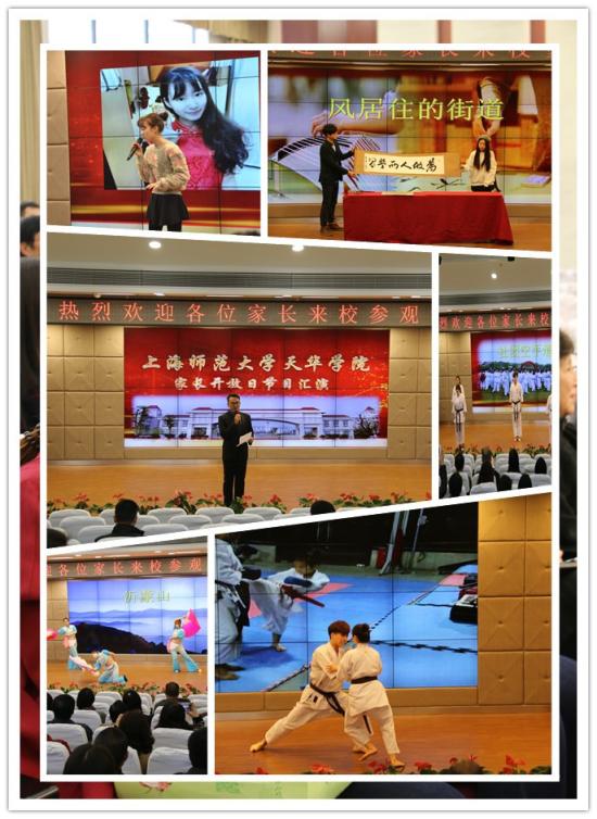 接着,家长们又参观了文化长廊、新图书馆,实地走访了7号学生宿舍楼。他们见宿舍窗明几净、地面整洁、被子方正,牙刷杯子都摆放整齐,感到无比惊喜。在宿舍底楼,家长们参观了的学生党员工作站,看到了设施先进、环境优美的学生工作服务平台。随后,家长们到晖华楼小剧场,观摩精彩的学生文艺汇演。大学生艺术团的婀娜舞姿和校园十佳歌手的款款深情给家长们留下深刻印象,空手道社团的精彩演出展现了天华学子的力与美的阳刚之气,器乐与书法表演完美结合体现的天华学子综合素养与文化内涵。最后,新生代表和班助理代表分别做“成长的足迹”、“相亲相爱一家人”的感言。