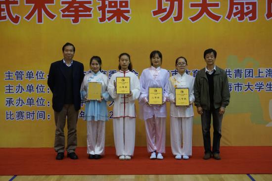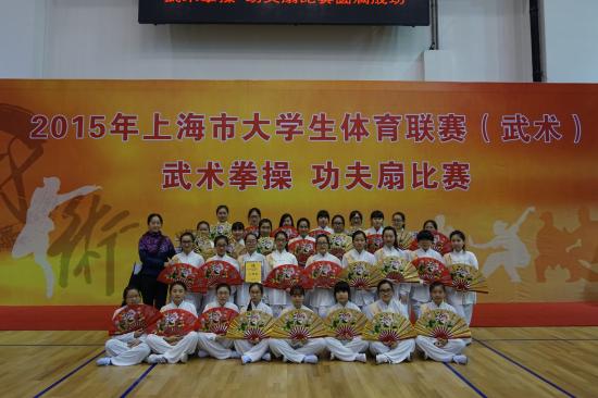2015年11月21日,上海市大学生阳光体育大联赛武术拳操比赛在上海中医药大学举行。我校功夫扇队荣获高校组二等奖。本次比赛由答英娟老师带队参赛,同时参赛的有华东师范大学、华东理工大学、上海中医药大学、上海师范大学等近20支队伍。