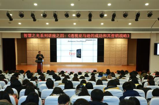 2015年11月26日下午,我校“智慧之光”系列学术讲座第四讲在晖华楼小剧场正式开讲。美国康州大学商业管理学博士、罗伯特莫理斯大学商学院营销学教授屠彦彬,为现场管理学院300名左右的师生作了题为“透视亚马逊的成功和其营销战略”的学术讲座。