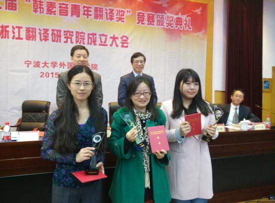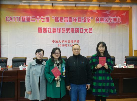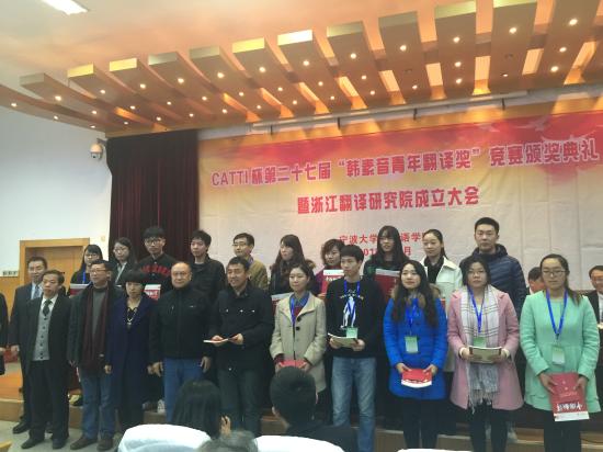 2015年12月5日,CATTI杯全国第二十七届“韩素音青年翻译奖”竞赛颁奖典礼在宁波大学举行。中国外文局局长、中国翻译研究院院长、中国翻译协会会长周明伟,中国外文局国际合作部主任、中国译协常务副秘书长姜永刚,《中国翻译》杂志副主编、中国翻译协会翻译理论与翻译教学委员会副主任兼秘书长杨平等出席了颁奖典礼。