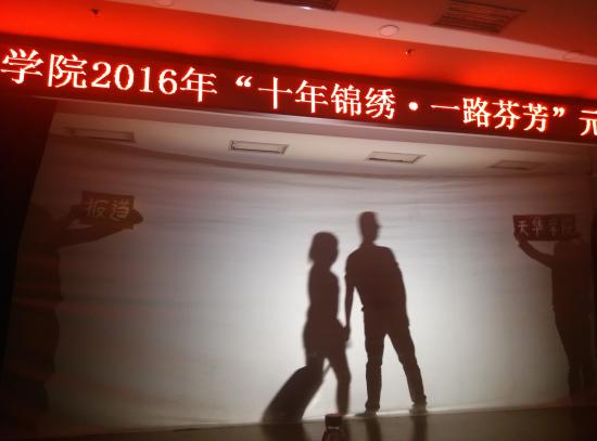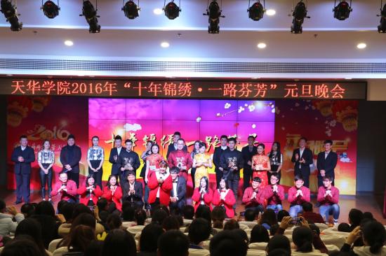 2015年12月30日17:30,由我校学保处、团委主办的2016年“十年锦绣,一路芬芳”元旦晚会在晖华楼小剧场隆重举行,党委书记韩晓玉、高级顾问陈颖书、党委副书记曹云林、校监史文、校监周烨刚、管理学院院长程葆青、健康学院院长祝亚平、进修学院院长吴登友、党委宣传部长齐砚奎、实习实训处处长符跃鸣、资产处设备处处长朱清、学保处常务副处刘天翔等出席本次晚会。