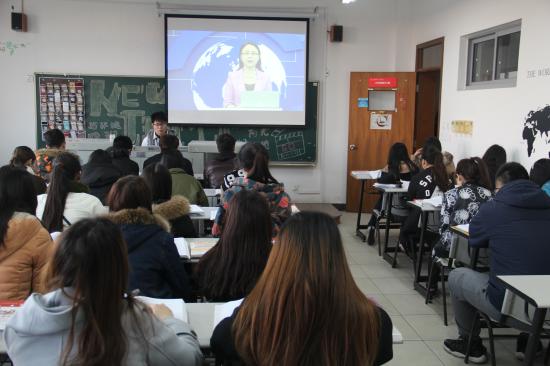 2月29日,本学期学生开课第一天,早上7:20,总校监郭伟奇、副校长龚春蕾、党委副书记曹云林以及二级学院党总支书记对大一、大二年级72间早自习教室进行了巡视,《天华教你学英语》视频播放工作组织有序、各班级教室整洁、同学们精神饱满。