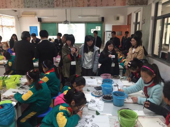代表团一行前往嘉定南苑小学参观与交流,在学校走廊观赏教师和学生的作品,领略他们的书画特色。日本学生与中方小学教师互相上课、听课,在中日双方的教学方式和课堂效果方面,获得了一次直观的体验。参观结束后,代表团来到我校与校领导进行深入的沟通与交流,为两校合作做了进一步探索。随后,代表团与日语专业学生进行交流,反响热烈。