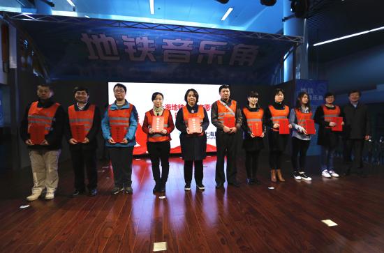 (申通地铁集团党委副书记徐建群为2015年上海地铁志愿者优秀组织奖获得者颁奖)