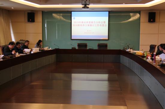 2016年4月12日,学校在明华楼五楼会议中心召开2015年就业质量报告分析会暨2016级培养方案修订工作布置会,总校监郭伟奇,副校长龚春蕾,校监史文,教务长杨良准,就业指导中心主任郭伟钧、副主任吴莺,二级学院教学院长、各专业主任及相关职能部门负责人出席了本次会议。会议由副校长龚春蕾主持。